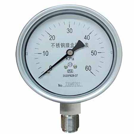 YE100B/150B不銹鋼膜盒壓力表是根據普通膜盒壓力表的結構原理而研制的具有耐腐蝕的微壓測量儀表。導壓系統及外殼均釆用不銹鋼材料制成。應用于耐腐蝕要求較高的工藝流程中的各種氣體介質的微壓和副壓的測量,也可用于鍋爐通風,氣體管道燃裝置等及其它類似設備上。是引進國外先進技術設備中同類儀表實現國產化的理想配套產品。